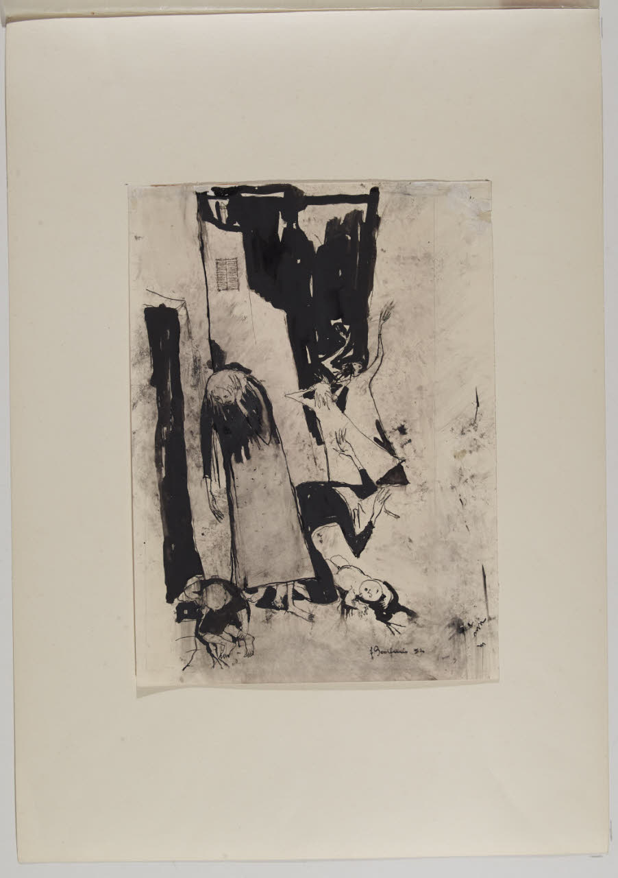 matita, inchiostro a penna e pennello su carta bianca