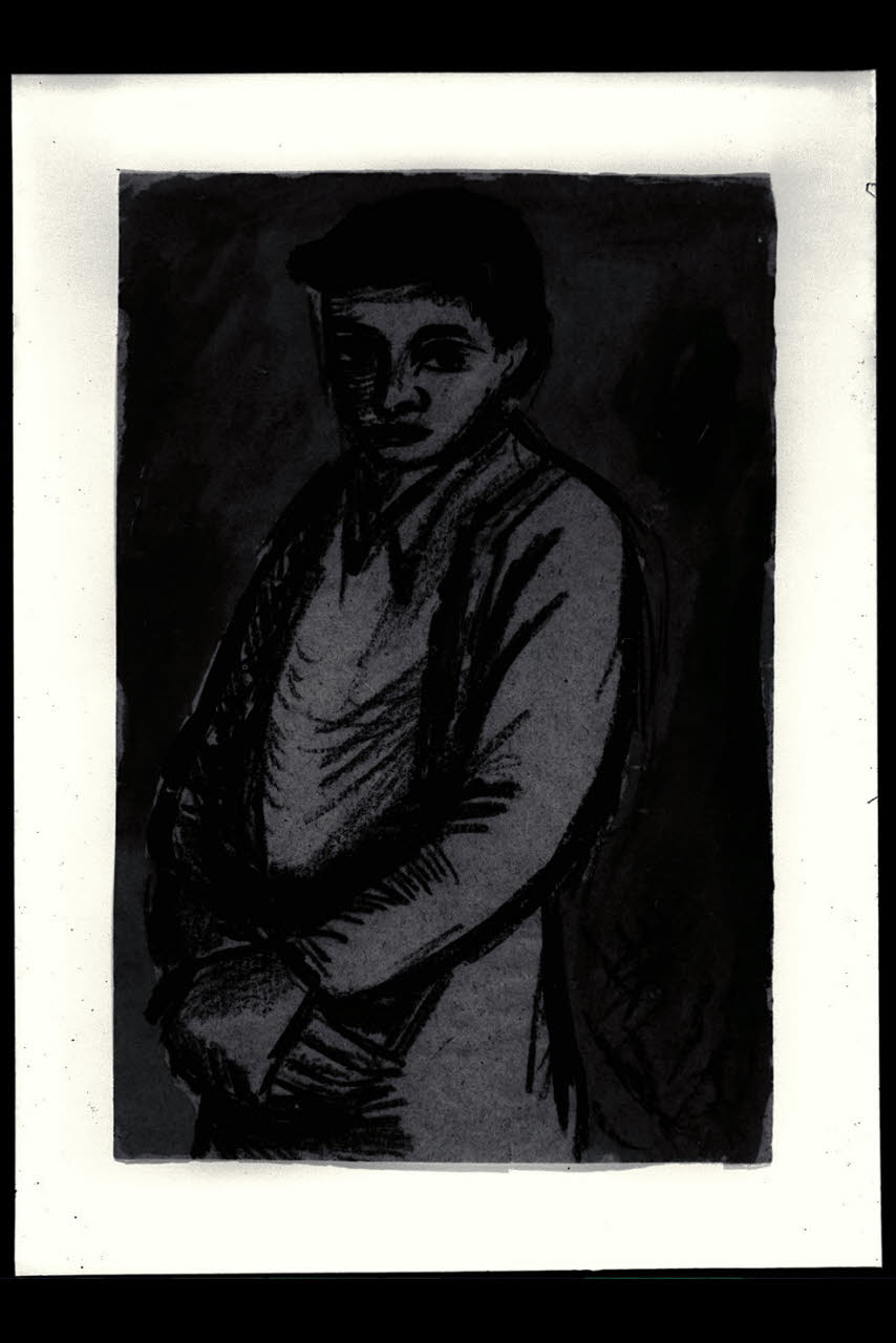 inchiostro a pennello, acquerello, gouache, carboncino su carta verdastra