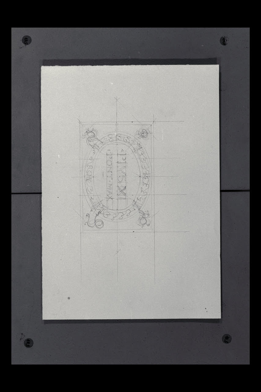 Pannello centrale della copertura della sala ottagonale con dedica a Pio XI nella Nuova Pinacoteca Vaticana