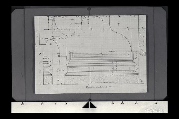 Sezione ed alzato con dettaglio in scala maggiore della zoccolatura per quadro San Girolamo nella Nuova Pinacoteca Vaticana