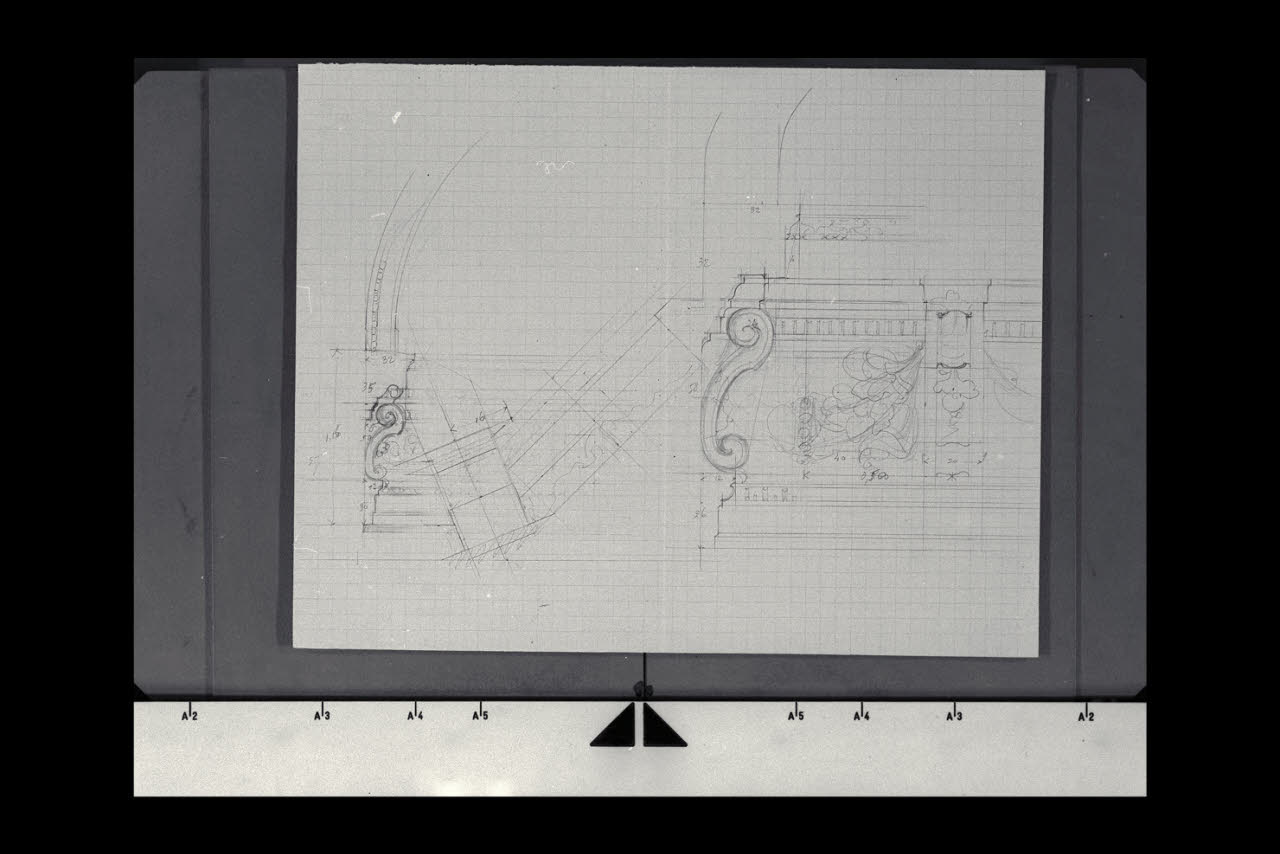 Alzato e profilo della decorazione della cornice lungo la volta della sala ottagona nella Nuova Pinacoteca Vaticana