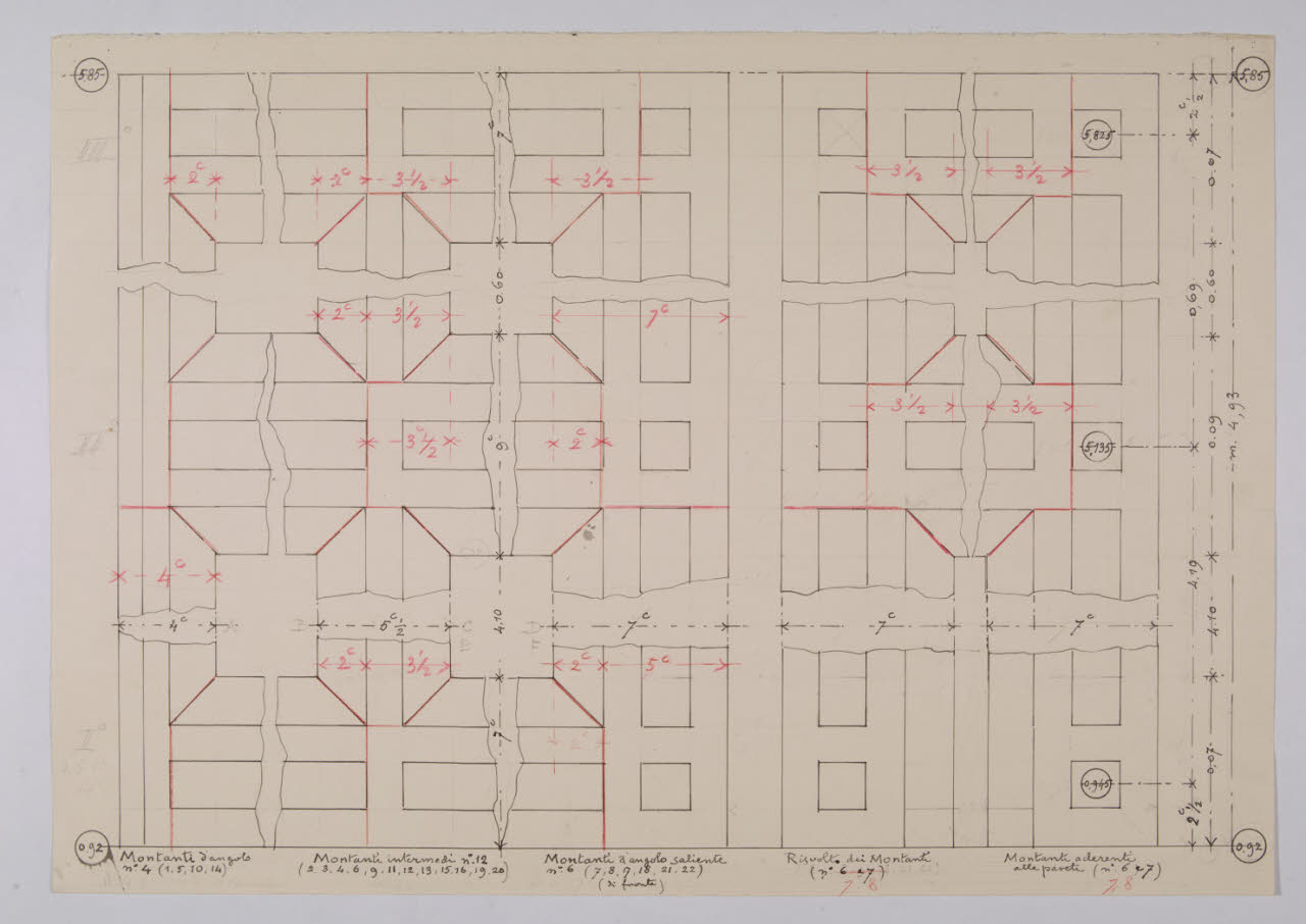 Dettaglio dei montanti delle vetrine per gli arazzi della sala Raffaello nella Nuova Pinacoteca Vaticana