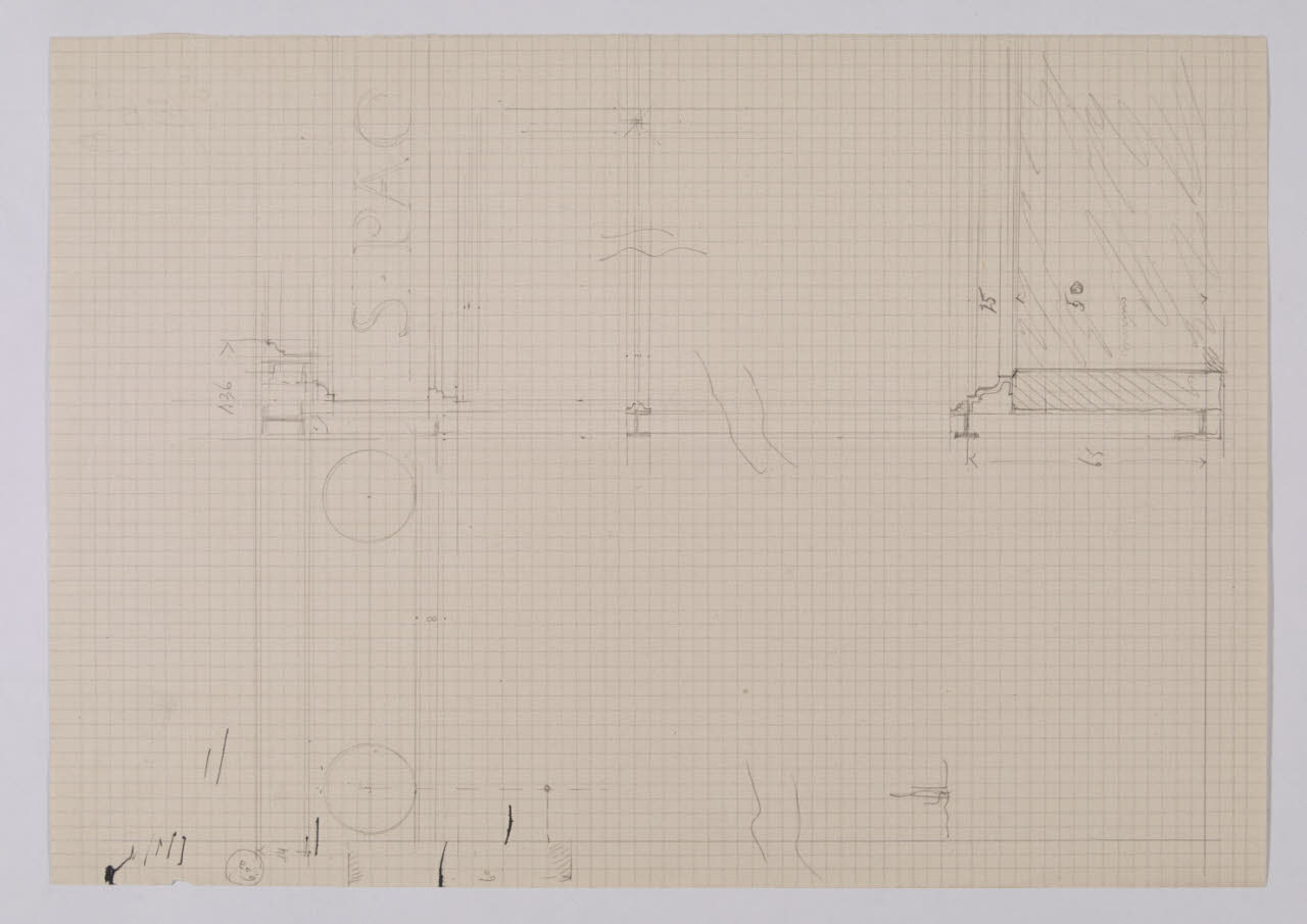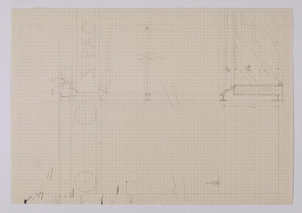 Disegno in sezione del meccanismo per lo spostamento degli arazzi della sala Raffaello nella Nuova Pinacoteca Vaticana