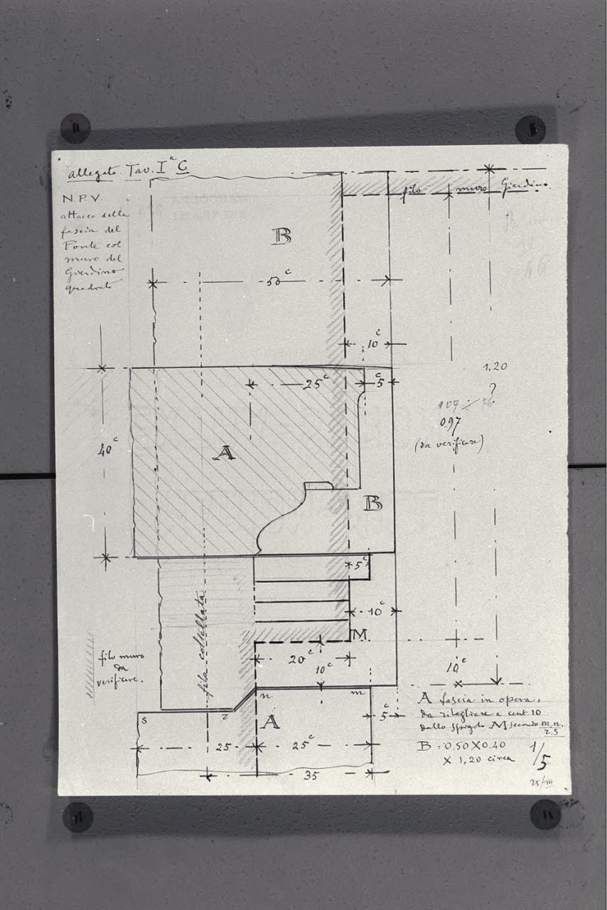 Sezione dell'attacco della fascia del ponte col Muro del giardino quadrato nella Nuova Pinacoteca Vaticana