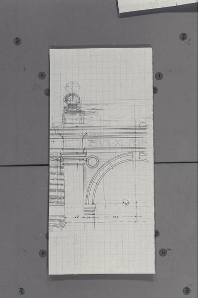Alzato di un dettaglio del portico di collegamento tra i Musei e la Nuova Pinacoteca Vaticana