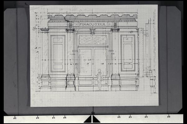 Alzato e sezione dell'ingresso alla Nuova Pinacoteca Vaticana