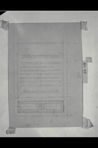 Cartiglio con iscrizione dedicatoria a Pio XI per la Nuova Pinacoteca Vaticana