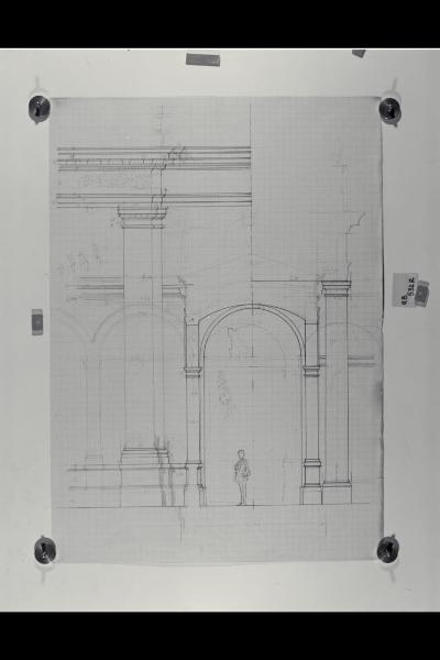 Alzato delle arcate con dettagli del fregio del collegamento tra i Musei Vaticani e la Nuova Pinacoteca Vaticana