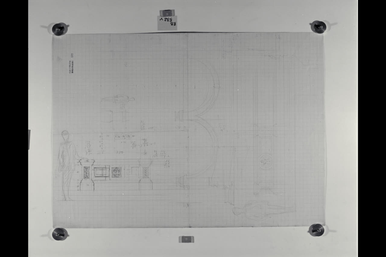 Alzato di due arcate e di un dettaglio della balaustra del collegamento tra i Musei Vaticani e la Nuova Pinacoteca Vaticana