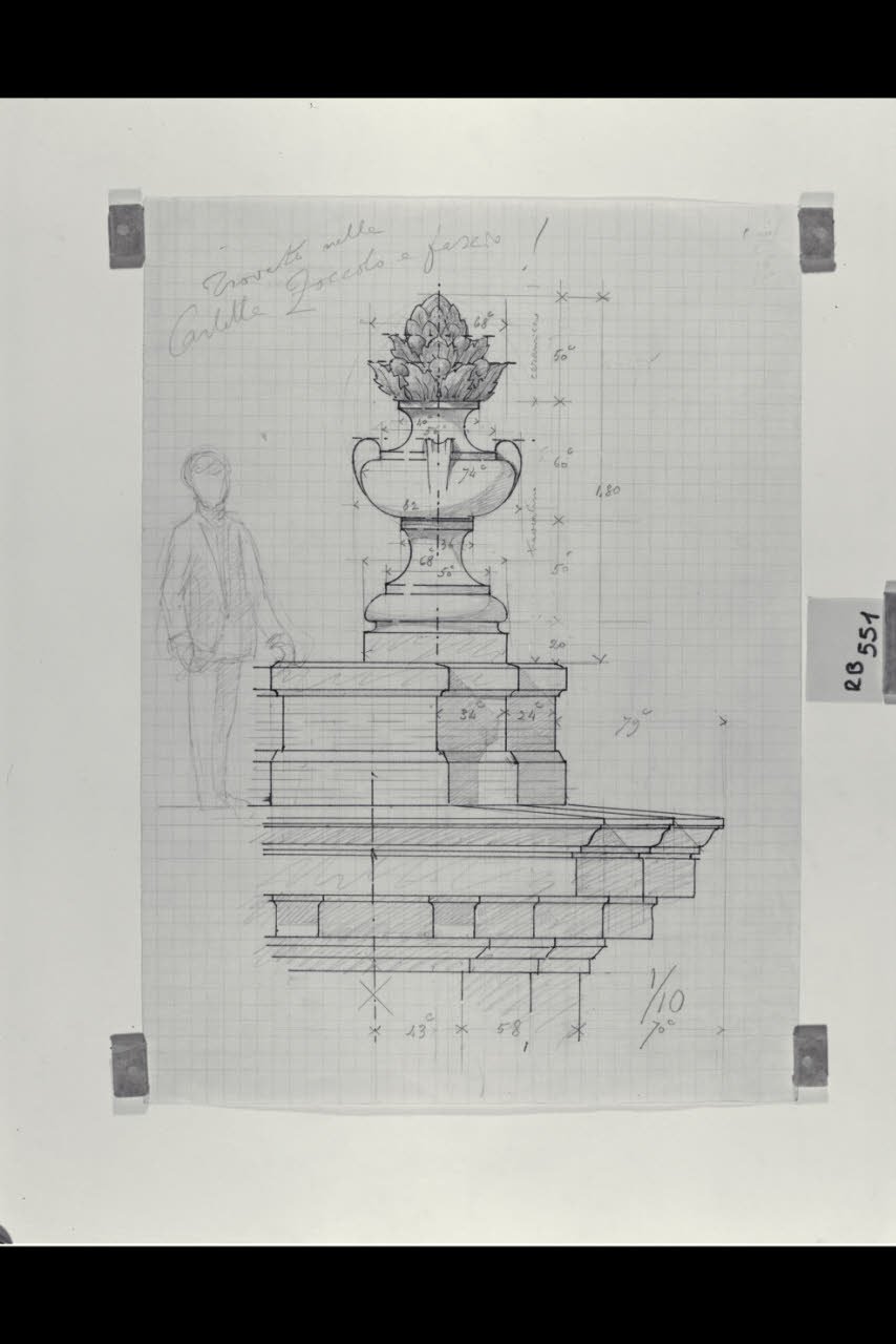 Disegno della cornice e dei vasi di coronamento nella Nuova Pinacoteca Vaticana