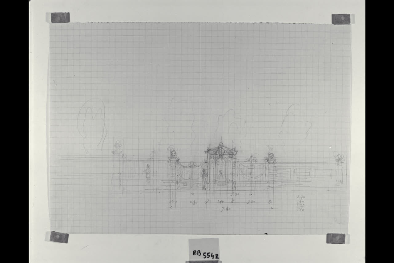 Prospetto del motivo architettonico tra i due cancelli d'ingresso alla Nuova Pinacoteca Vaticana