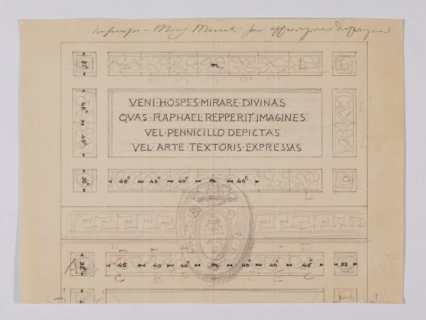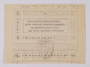 Disegno per il sopraporta con lapide con iscrizione che invita alla sala di Raffaello nella Nuova Pinacoteca Vaticana