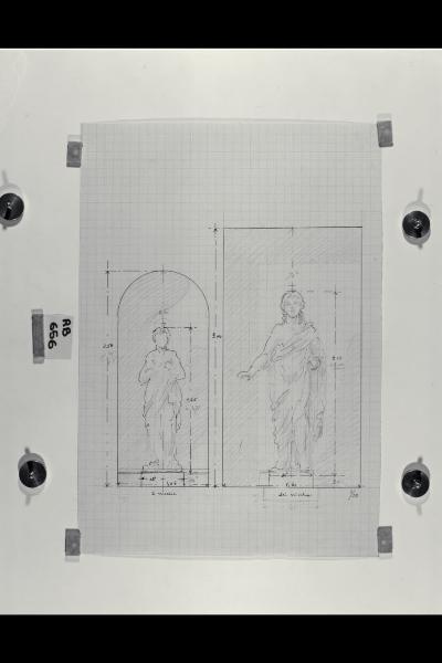 Schizzi per le statue delle nicchie dei prospetti nella Nuova Pinacoteca Vaticana