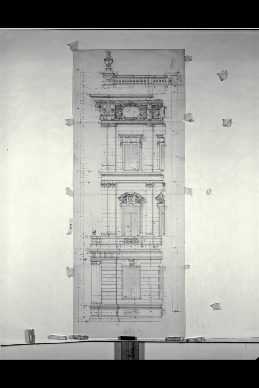 Prospetto della ricostruzione dell'edificio in piazza della Scala per la sede di Milano della Banca Commerciale Italiana in piazza della Scala e via Santa Margherita. Prospetto della ricostruzione dell'edificio in piazza della Scala per la sede di Milano della Banca Commerciale Italiana in piazza della Scala e via Santa Margherita