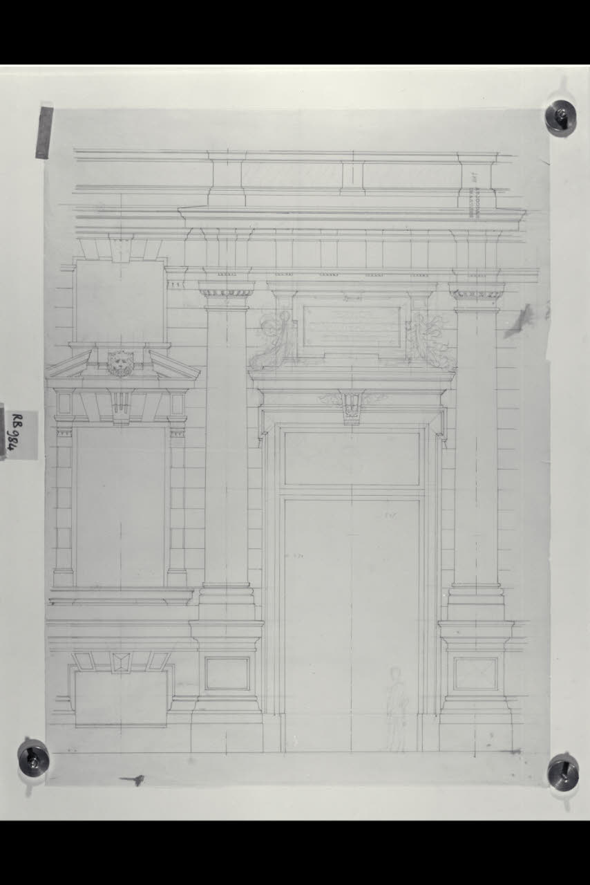Particolare di un prospetto della sede centrale di Milano della Banca Commerciale Italiana in piazza della Scala e via Santa Margherita. Particolare di un prospetto della sede centrale di Milano della Banca Commerciale Italiana in piazza della Scala e via Santa Margherita