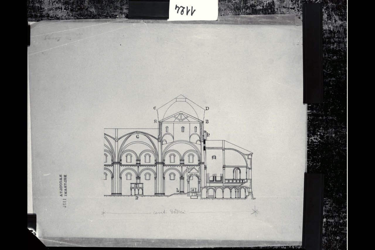 Sezione longitudinale dell'area presbiteriale e del coro della Basilica di Sant'Ambrogio a Milano