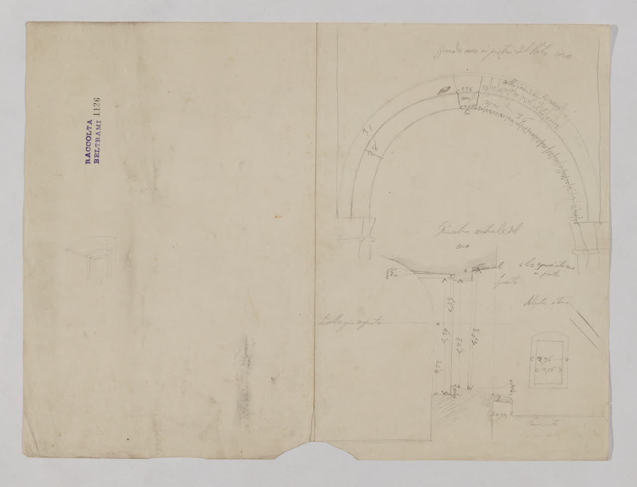 Prospetto dell'arco, spaccato e alzato interno della finestra del coro della Basilica di Sant'Ambrogio a Milano