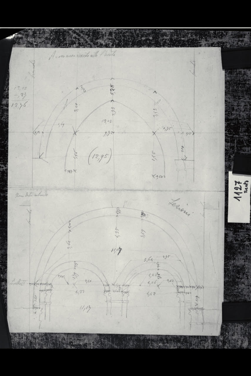 Prospetto di due arcate e un particolare di arco d'ingresso alla Basilica di Sant'Ambrogio a Milano