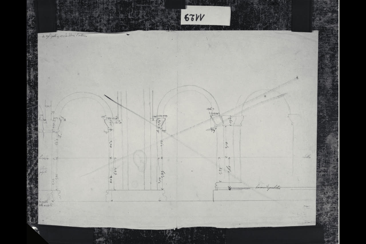 Eidotipo delle due arcate tra l'area del pulpito e il presbiterio lungo la navata sinistra a livello terra nella Basilica di Sant'Ambrogio a Milano