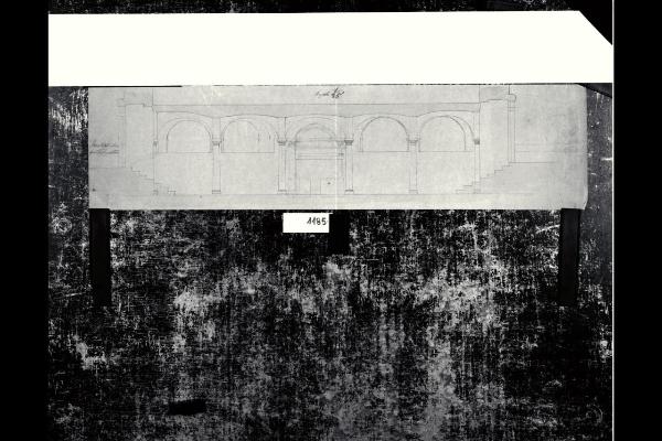 Sezione trasversale della cripta lungo le scale di accesso e verso l'urna dei tre santi Ambrogio, Gervaso e Protaso nella Basilica di Sant'Ambrogio a Milano