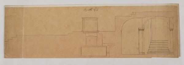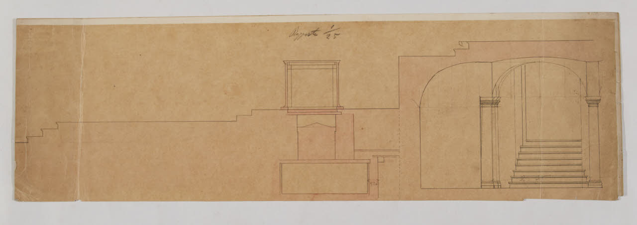Rilievo della reciproca posizione tra il sarcofago dei santi Ambrogio, Gervaso e Protaso, l'altare maggiore e la discesa della cripta nella Basilica di Sant'Ambrogio a Milano
