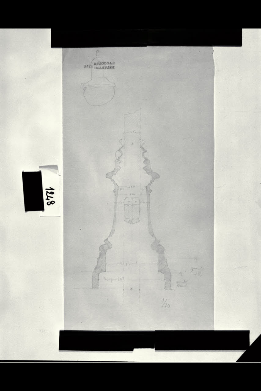 Milano, Piazza della Scala. Progetto per la sistemazione della Piazza della Scala. Lampioni (Candelabri). Base: sezione. Milano, Piazza della Scala. Progetto per la sistemazione della Piazza della Scala. Lampioni (Candelabri). Base: sezione