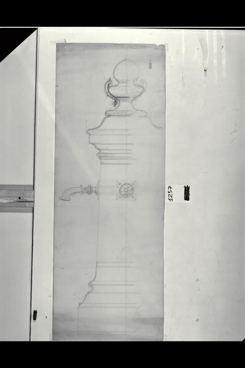 Milano, Piazza della Scala. Progetto per la sistemazione della Piazza della Scala. Fontanella. Alzato in vista laterale. Milano, Piazza della Scala. Progetto per la sistemazione della Piazza della Scala. Fontanella. Alzato in vista laterale