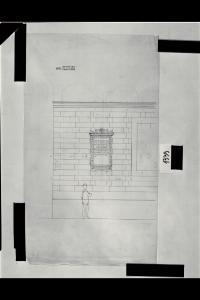Particolare della facciata dell’edificio nel lato ovest della Piazza d’Armi con lapide Mangili nel Castello Sforzesco di Milano. Particolare della facciata dell’edificio nel lato ovest della Piazza d’Armi con lapide Mangili nel Castello Sforzesco di Milano