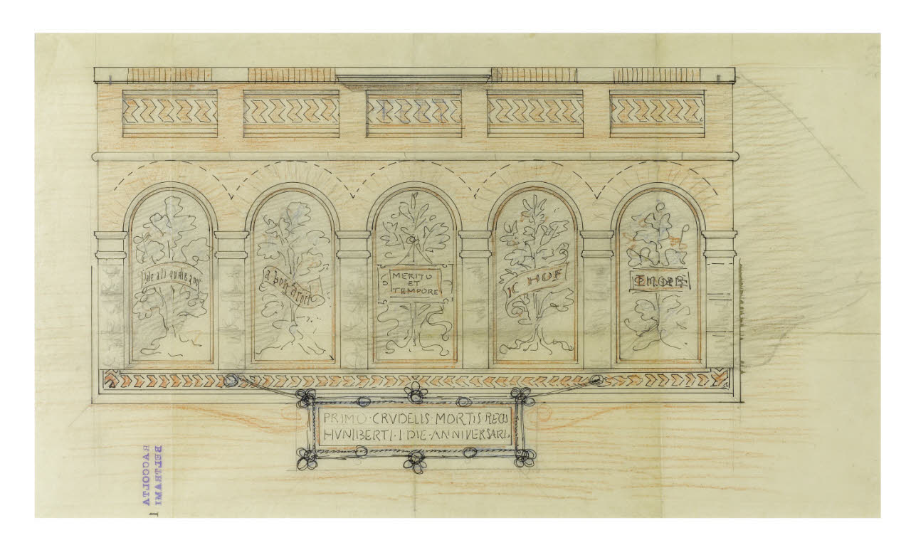 Milano, Castello Sforzesco: Prospetto della fascia decorativa sottostante la trifora della Sala Castellana verso la Corte grande