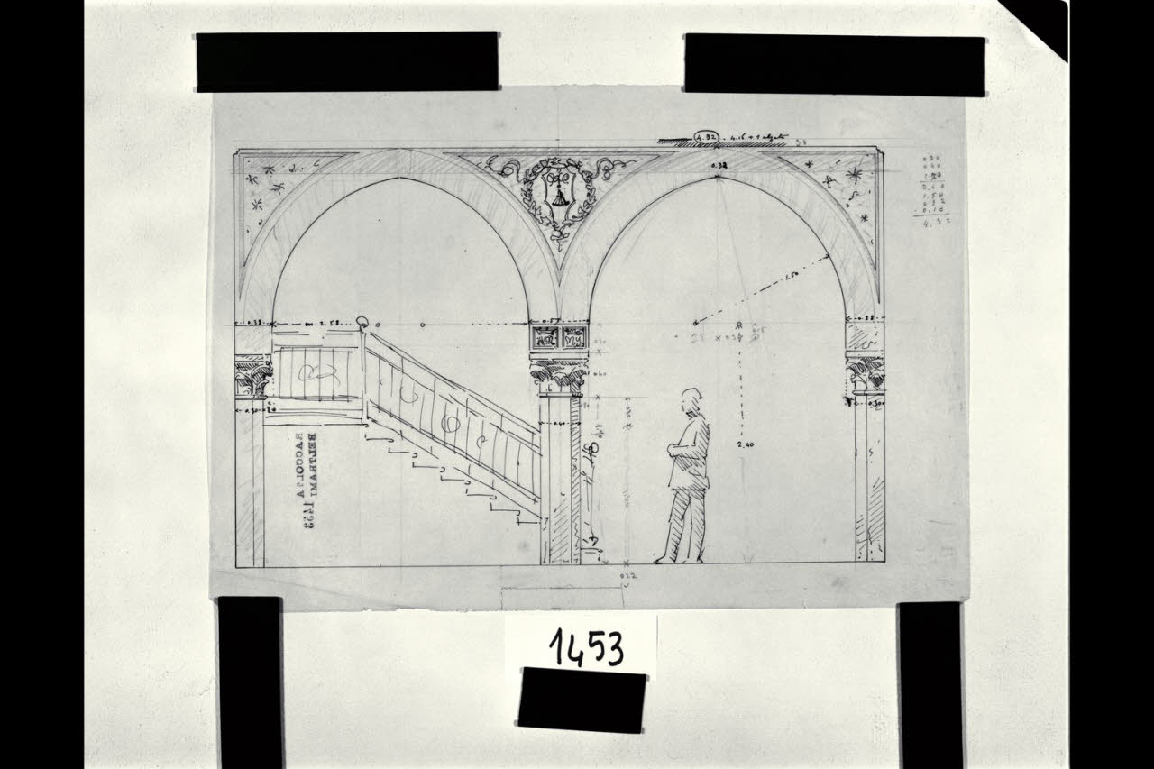Prospetto della scala dei Missaglia nella cortina del Castello Sforzesco di Milano verso la città. Prospetto della scala dei Missaglia nella cortina del Castello Sforzesco di Milano verso la città