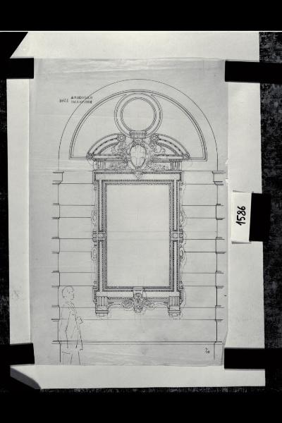 Milano, Palazzo Marino: cornici delle finestre.. Milano, Palazzo Marino. Cornici delle finestre. Alzato