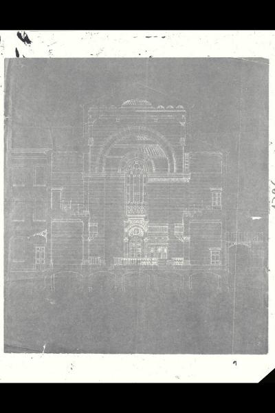 Tempio Israelitico di via della Guastalla. Sezione trasversale. Progetto definitivo. Milano, Tempio Israelitico, via Guastalla. Sezione trasversale. Progetto definitivo