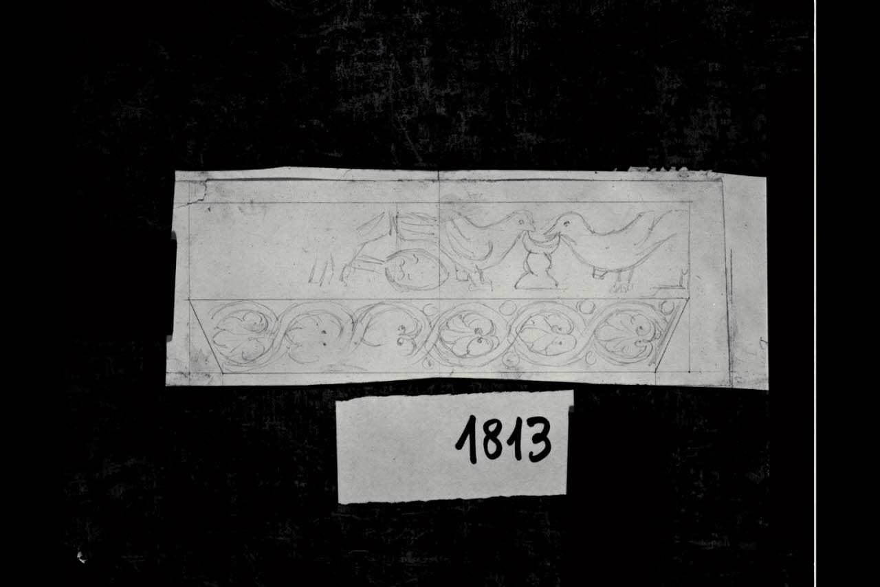 Chiesa di Santa Maria in Aurona a Milano, rilievo dell'apparato scultoreo: capitello con fregio fitomorfo e uccelli