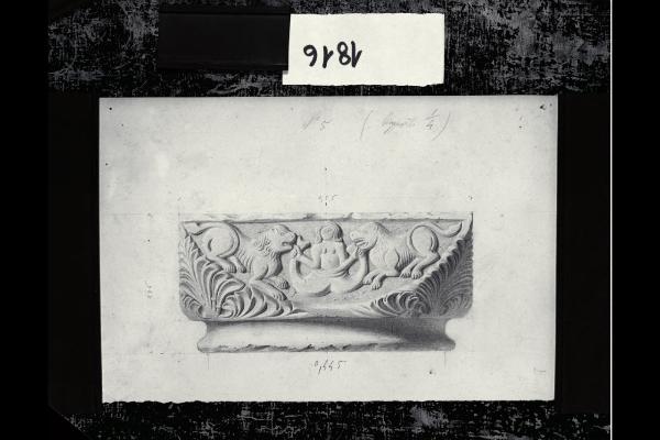 Chiesa di Santa Maria in Aurona a Milano, rilievo dell'apparato scultoreo: capitello figurato con leoni e sirena bicaudata