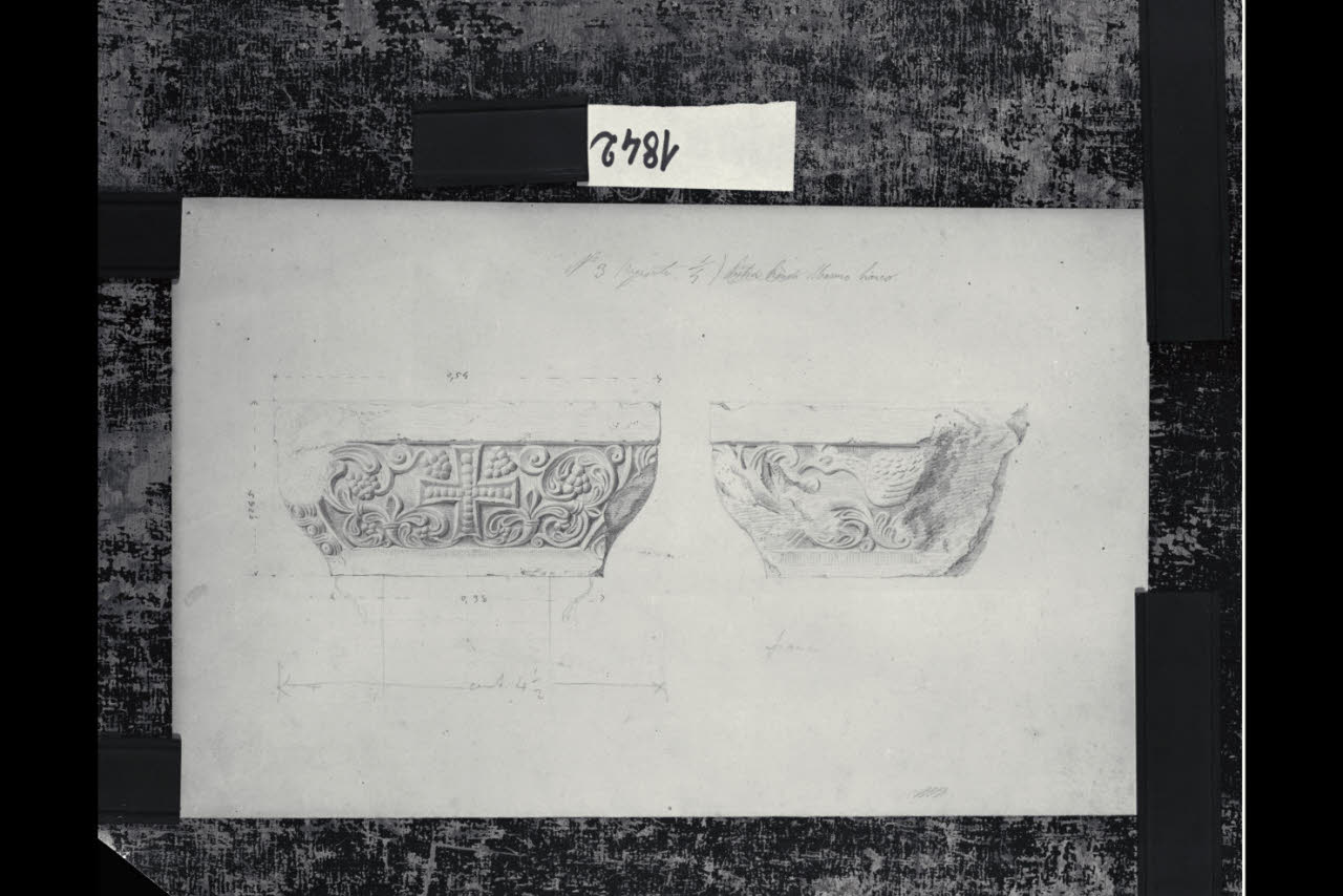 Chiesa di Santa Maria in Aurona a Milano, rilievo dell'apparato scultoreo: due visuali del capitello n. 3 per una semicolonna