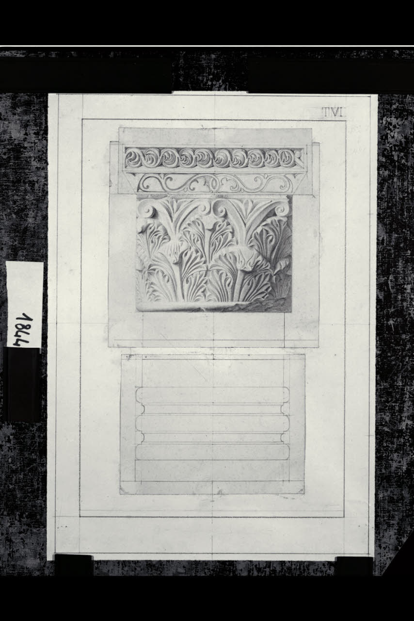 Chiesa di Santa Maria in Aurona a Milano, rilievo dell'apparato scultoreo: capitello e base di colonna