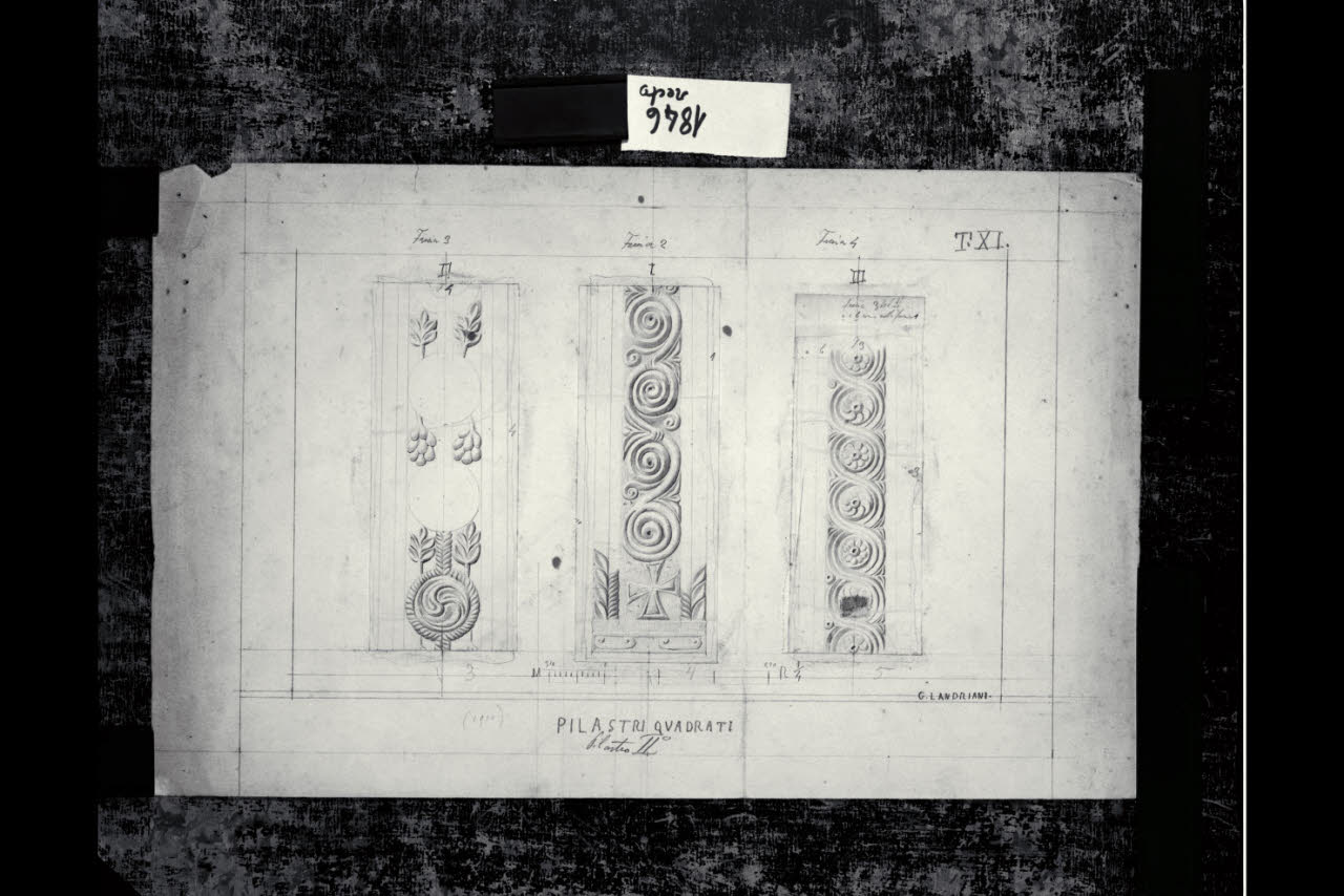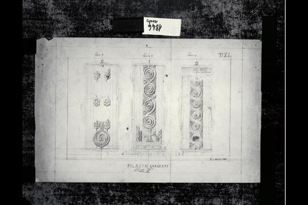 Chiesa di Santa Maria in Aurona a Milano, rilievo dell'apparato scultoreo: tre prospetti del pilastro quadrato n. 2