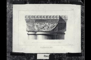 Chiesa di Santa Maria in Aurona a Milano, rilievo dell'apparato scultoreo: capitello di un pilastro con fregio fitomorfo e uccelli