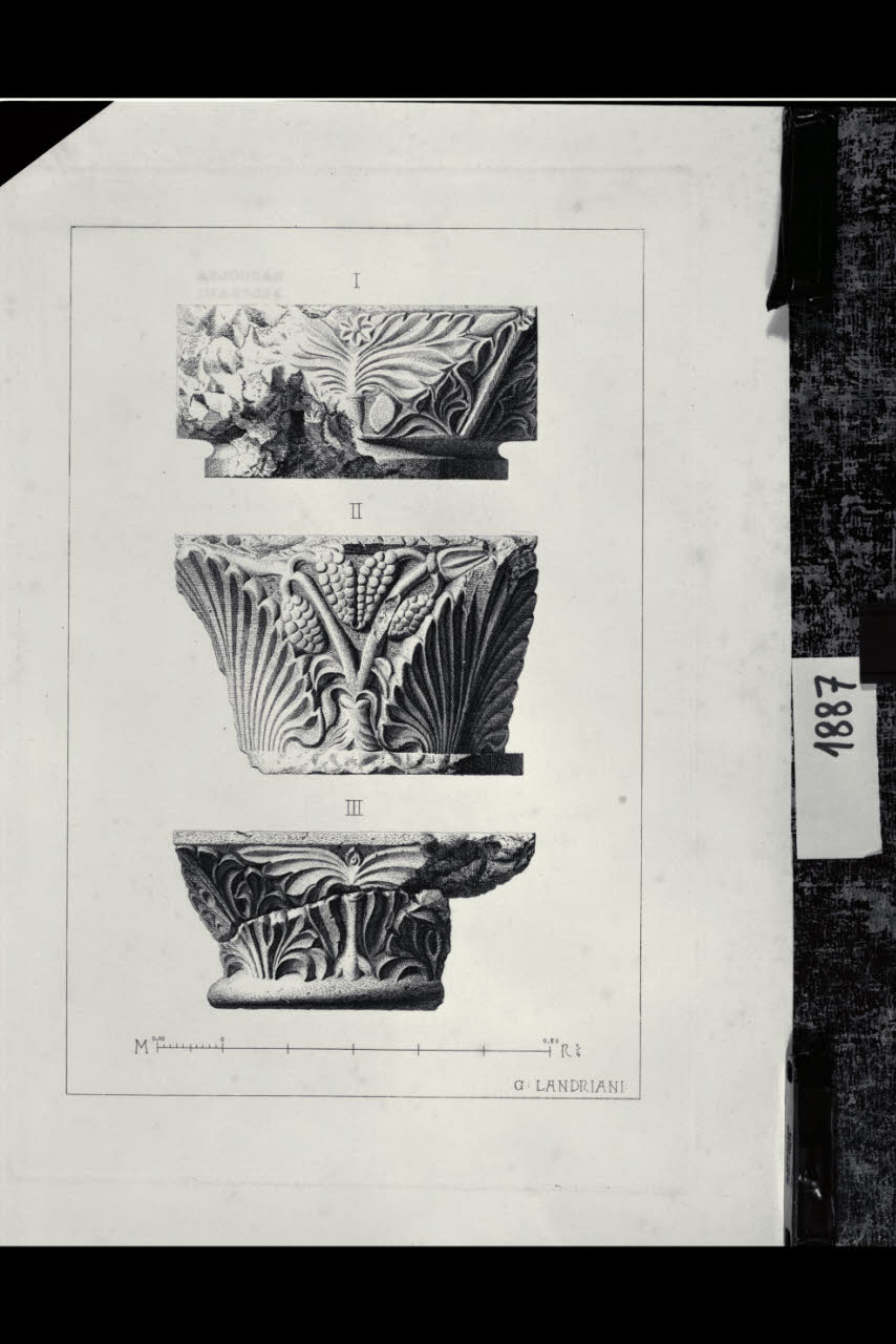 Chiesa di Santa Maria in Aurona a Milano, rilievo dell'apparato scultoreo: tre facce di capitello con decorazione fitomorfa