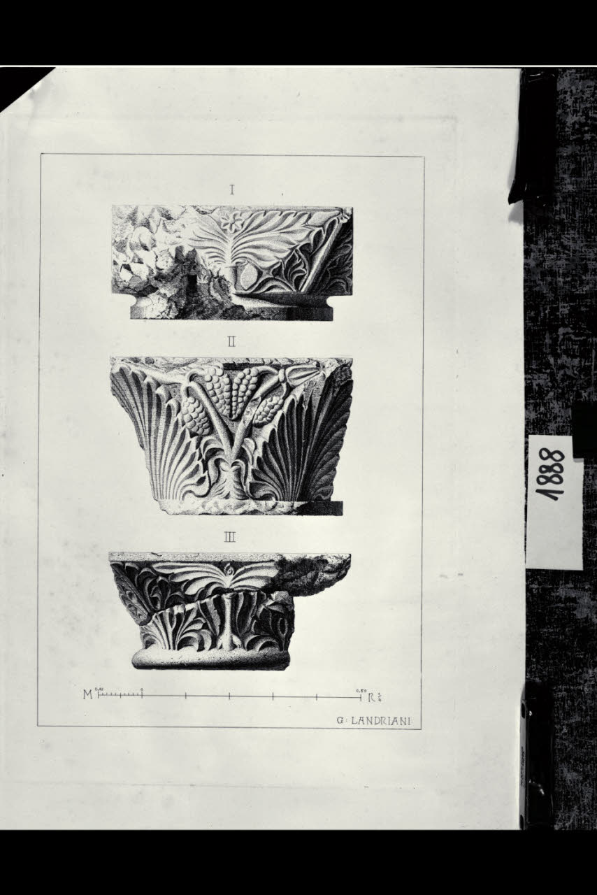 Chiesa di Santa Maria in Aurona a Milano, rilievo dell'apparato scultoreo: tre facce di capitello con decorazione fitomorfa