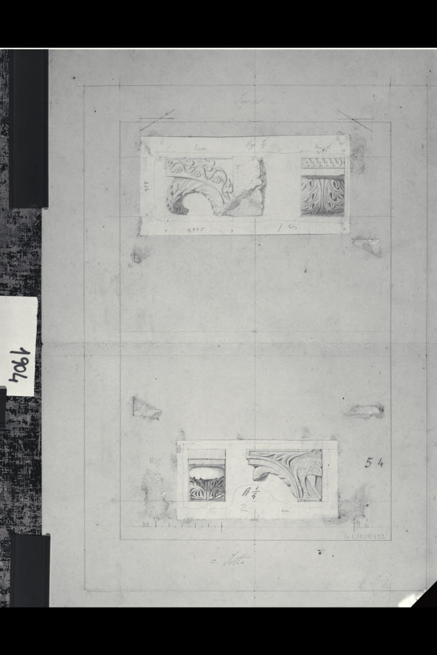 Chiesa di Santa Maria in Aurona a Milano, rilievo dell'apparato scultoreo: dettagli di capitelli