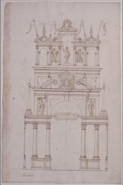 Apparati effimeri per Margherita d'Austria: arco della regina, prospetto del rovescio
