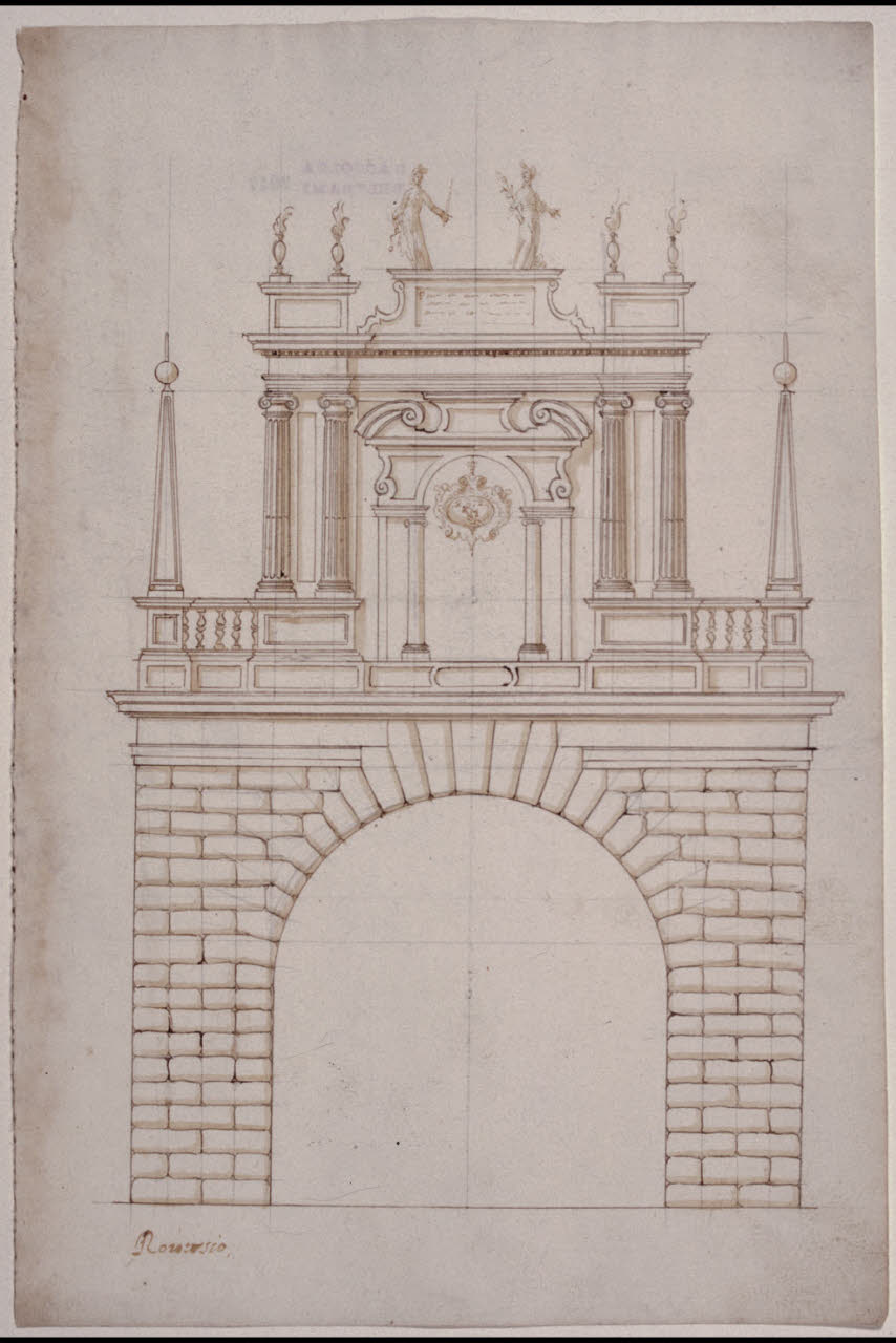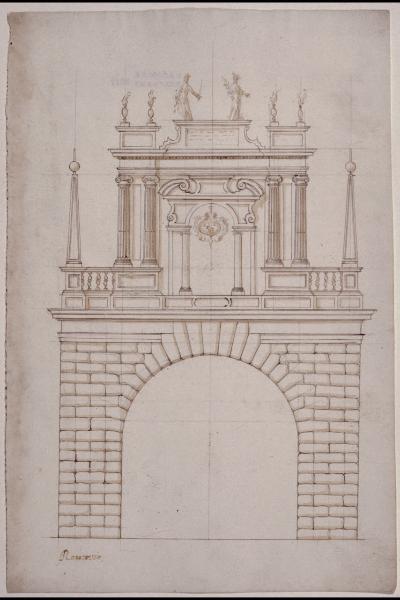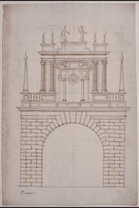 Apparati effimeri per Margherita d'Austria: arco della di città di Cremona, prospetto del rovescio