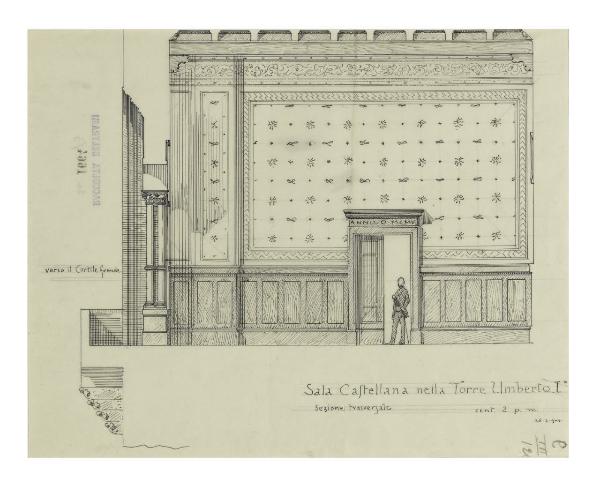 Milano, Castello Sforzesco: Sezione trasversale della Sala Castellana nella torre Umberto I