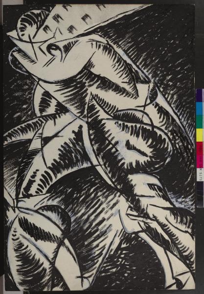 - NOTIZIE STORICO CRITICHE L'opera è un d'après della vista dal lato sinistro della scultura Forme uniche della continuità nello spazio, gesso esposto alla "Esposizione di Scultura futurista del pittore e scultore futurista Boccioni" allestita a Parigi nel 1913. Il disegno, dal quale deriva anche una litografia, venne presentato nella personale Esposizione di scultura futurista che ebbe luogo a Firenze nel 1914. Boccioni lo inserì nella sezione Voglio fissare la forma umana in movimento, esplicitando il senso delle proprie ricerche volte a cogliere "il ponte tra l'infinito plastico esteriore e l'infinito plastico interiore" come enunciato nel Manifesto tecnico della scultura futurista. Appartenuta alla sorella di Boccioni, la tempera passò all'aviatore Fedele Azari e in seguito a Ausonio Canavese che nel 1934 la donò, insieme ad altre opere, al Comune di Milano. All'epoca dell'ingresso nelle raccolte museali il suo titolo era Bianco e nero.
