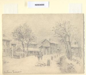 - NOTIZIE STORICO CRITICHE L'artista ha definito il disegno "Alla Magolfa" nella pagina manoscritta che accompagna il nono dei diciotto fascicoli della raccolta denominata "Vecchia Milano". Dai riscontri in loco si ipotizza che l'attuale ubicazione degli edifici innevati, scorciati dal Ferrari, corrisponda a via Magolfa approssimativamente all'altezza del numero civico 21, un'analoga veduta, contrassegnata dal numero di inventario 976, inquadra da un'altra angolazione il medesimo luogo.\nUn'antica strada fuori delle mura spagnole da Porta Ticinese conduceva ad un agglomerato di case rustiche chiamato "Magolfa", disposte attorno alla seicentesca chiesetta di Santa Maria del Sasso. Alcuni ipotizzano che la contrada risalga all'epoca longobarda e che tragga la sua denominazione da un nome proprio come Ghisulfo o Vidigulfo. Altra plausibile ipotesi è che il nome derivi dall'antico termine del dialetto milanese "magòlc" che significa stagno o pantano, quindi località acquitrinosa.\nLa vedova di Ferrari, proponendo i disegni all'attenzione del Comune di Milano, riconduceva la loro realizzazione agli ultimi anni di vita del marito. Una delle opere reca la data 1926; inoltre presso il Museo di Milano si conserva un'altra serie di 16 analoghe vedute a matita di Ferrari, datate dal 1924 al 1931. Pertanto si ritiene che la serie del Civico Gabinetto dei Disegni sia stata eseguita nell'arco cronologico dal 1924 al 1932. \nIn quell'epoca Milano stava conoscendo notevoli trasformazioni urbanistiche e il pittore, per contrastare la perdita di memoria provocata dalle demolizioni, decise di fissare nei suoi disegni gli angoli e gli scorci destinati a un radicale cambiamento.