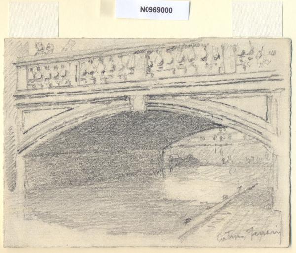 - NOTIZIE STORICO CRITICHE L'artista ha definito il disegno "A Monforte" nella pagina manoscritta che accompagna il quindicesimo dei diciotto fascicoli della raccolta denominata "Vecchia Milano". L'originaria denominazione del luogo deriva da una specie di fortilizio che un tempo si ergeva su un promontorio (Monte-Forte) nei pressi dell'antica pusterla medievale; altri ipotesi è che il nome del corso derivi da un supplizio collettivo, avvenuto nel 1033 nel Castello presso l'odierna Monforte d'Alba, di cui fu vittima un gruppo di appartenenti all'eresia catara. Dopo che furono eretti i Bastioni, la pusterla venne demolita e sostituita da una nuova nella cinta bastionata.\nIn origine i Navigli costituivano la fossa interna che assurgeva al compito di arteria urbana per il traffico natante e cingeva la parte più cospicua della città. La zona appare oggi del tutto diversa e le principali trasformazioni risalgono alla seconda metà del XIX secolo, quando, in seguito all'introduzione dei tram, si iniziò a ipotizzare la copertura dei tratti cittadini dei Navigli. Nel 1891 il primo segmento della fossa interna ad essere sacrificato fu quello occidentale, il cosiddetto Naviglio di San Gerolamo; a partire dal 1929 i lavori di copertura ripresero con sistematicità ininterrotta fino al 1930/1931. Attualmente il termine "Navigli", a Milano, identifica i due tratti scoperti del Naviglio Grande (fra le odierne Ripa di Porta Ticinese e l'Alzaia Naviglio Grande, in direzione di via Lodovico il Moro per Buccinasco e Corsico) e del Naviglio Pavese (fra via Ascanio Sforza e l'Alzaia Naviglio Pavese lungo via Chiesa Rossa per raggiungere Rozzano e collegarsi alla Strada dei Giovi) che si insinuano in città fino all'altezza di piazza XXIV Maggio e in senso più generale l'area compresa fra i due Navigli.\nLa vedova di Ferrari, proponendo i disegni all'attenzione del Comune di Milano, riconduceva la loro realizzazione agli ultimi anni di vita del marito. Una delle opere reca la data 1926; inoltre presso il Museo di Milano si conserva un'altra serie di 16 analoghe vedute a matita di Ferrari, datate dal 1924 al 1931. Pertanto si ritiene che la serie del Civico Gabinetto dei Disegni sia stata eseguita nell'arco cronologico dal 1924 al 1932. \nIn quell'epoca Milano stava conoscendo notevoli trasformazioni urbanistiche e il pittore, per contrastare la perdita di memoria provocata dalle demolizioni, decise di fissare nei suoi disegni gli angoli e gli scorci destinati a un radicale cambiamento.