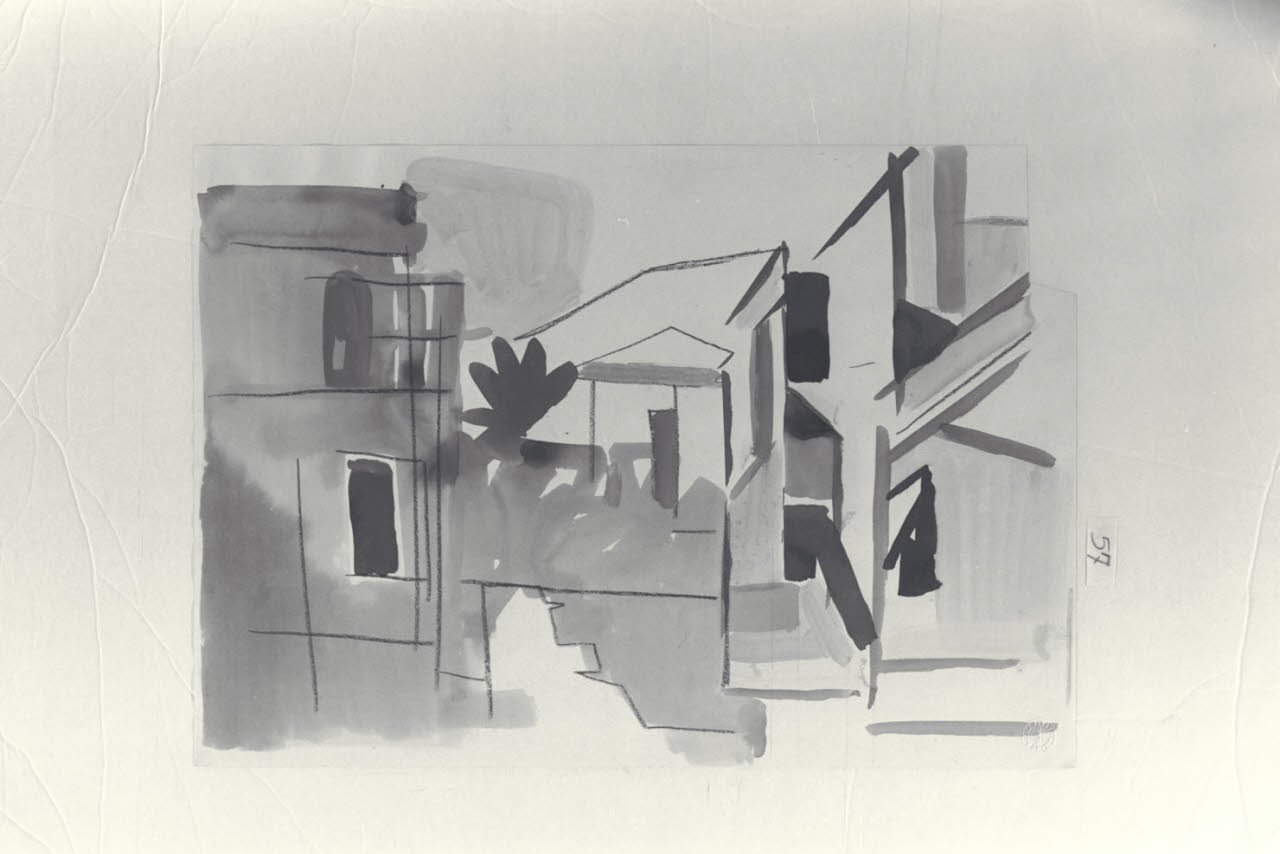matita Conté, inchiostro e acquerelli su carta