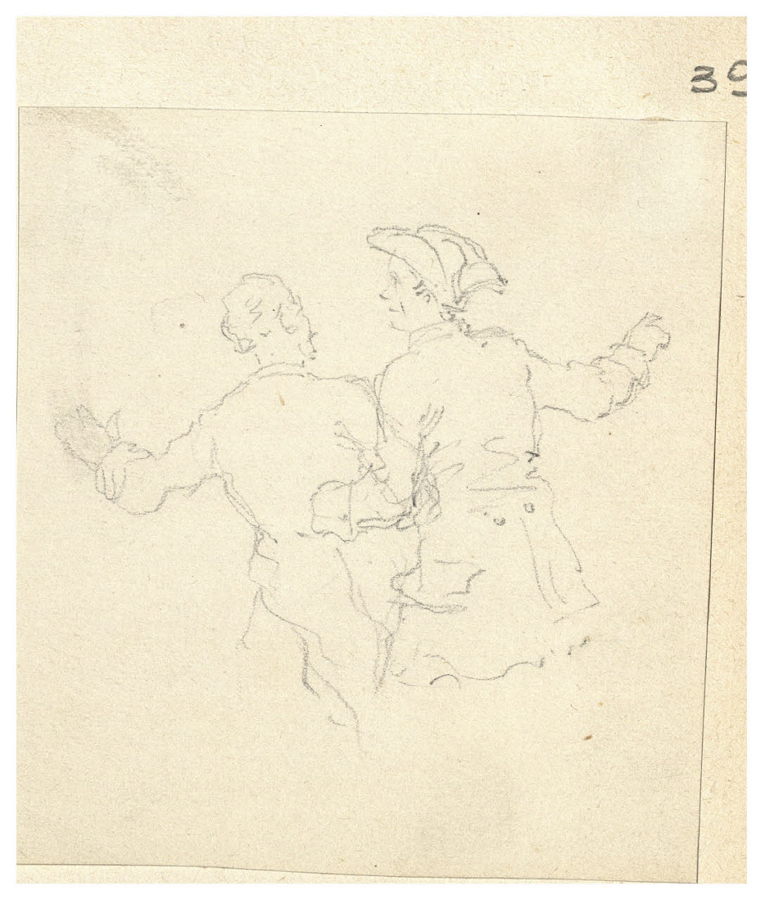 Figure maschili di spalle, a braccetto