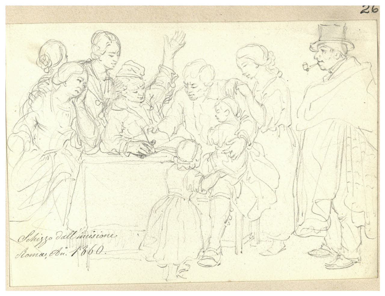 Gruppo di figure intorno ad un tavolo (Schizzo dall'incisione Roma 1860)